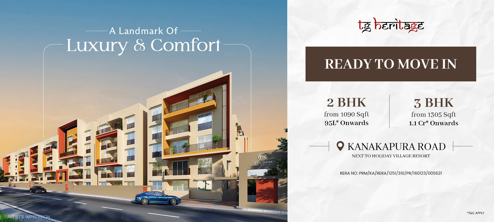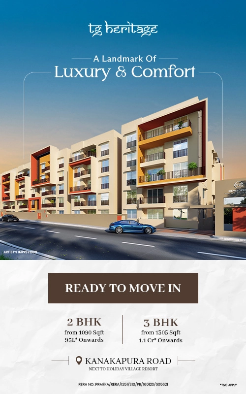 Set in the heart of Kanakapura Road, TG Heritage brings together the warmth of Old Bangalore with the comfort of modern living. With well-designed 2 & 3 BHK luxury apartments, it’s a place where families can find peace, joy, and a true sense of belonging. More than a home, TG Heritage is a community that feels like family and grows with you for generations.